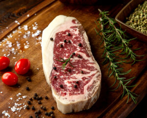 Ribeye: American style con “occhio” di grasso, dal costato. Alta marezzatura per un sapore burroso, griglia o reverse sear.